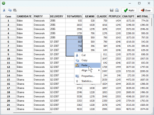 Un nouvel éditeur de feuille de calcul a été ajouté pour permettre la manipulation directe des variables numériques, catégorielles, logiques et de date. Il prend en charge les opérations standards du presse-papiers, facilitant l’attribution ou la modification rapide de valeurs sur un grand nombre de cas. Cela offre une manière plus efficace de consulter et d’éditer les variables d’un projet.