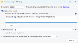 The new Document Analysis & Coding feature analyzes documents individually and then builds a structured analytical framework that can be applied consistently across the full dataset. This enables researchers to generate global topic lists, extract arguments or policy positions, identify justifications, and summarize key elements across large collections of long-form text.